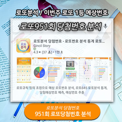 로또 951회 당첨번호 준비에 로또번호 통계 자료를 활용하신다면 로또분석 당첨번호 로또앱을 이용하면 당첨번호별로 통계 자료를 조회할 수 있습니다.