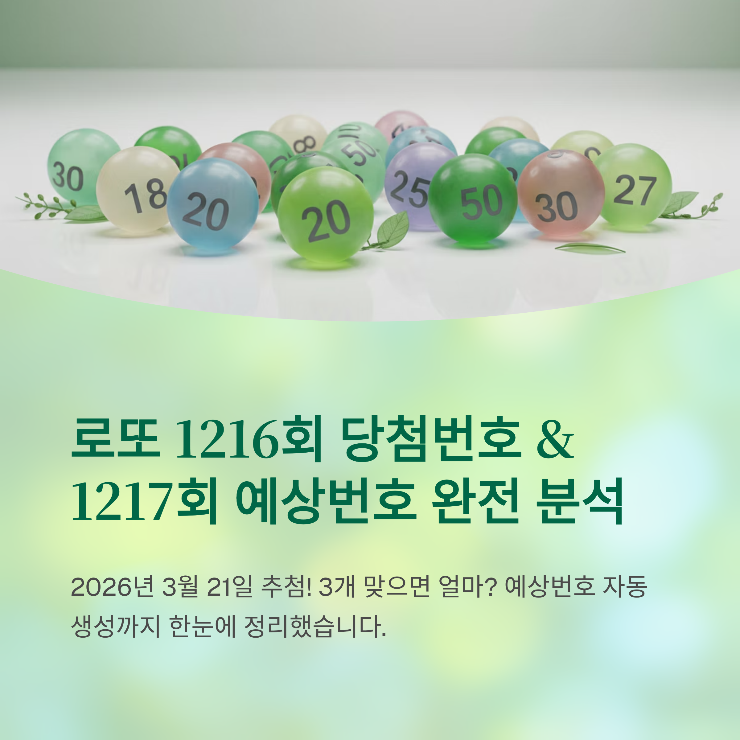 오늘 저녁 1216회 추첨 결과가 나오면, 위 두 앱을 통해 당첨 여부를 바로 확인하고 곧바로 1217회를 위한 새로운 예상번호를 생성해 보시기 바랍니다.